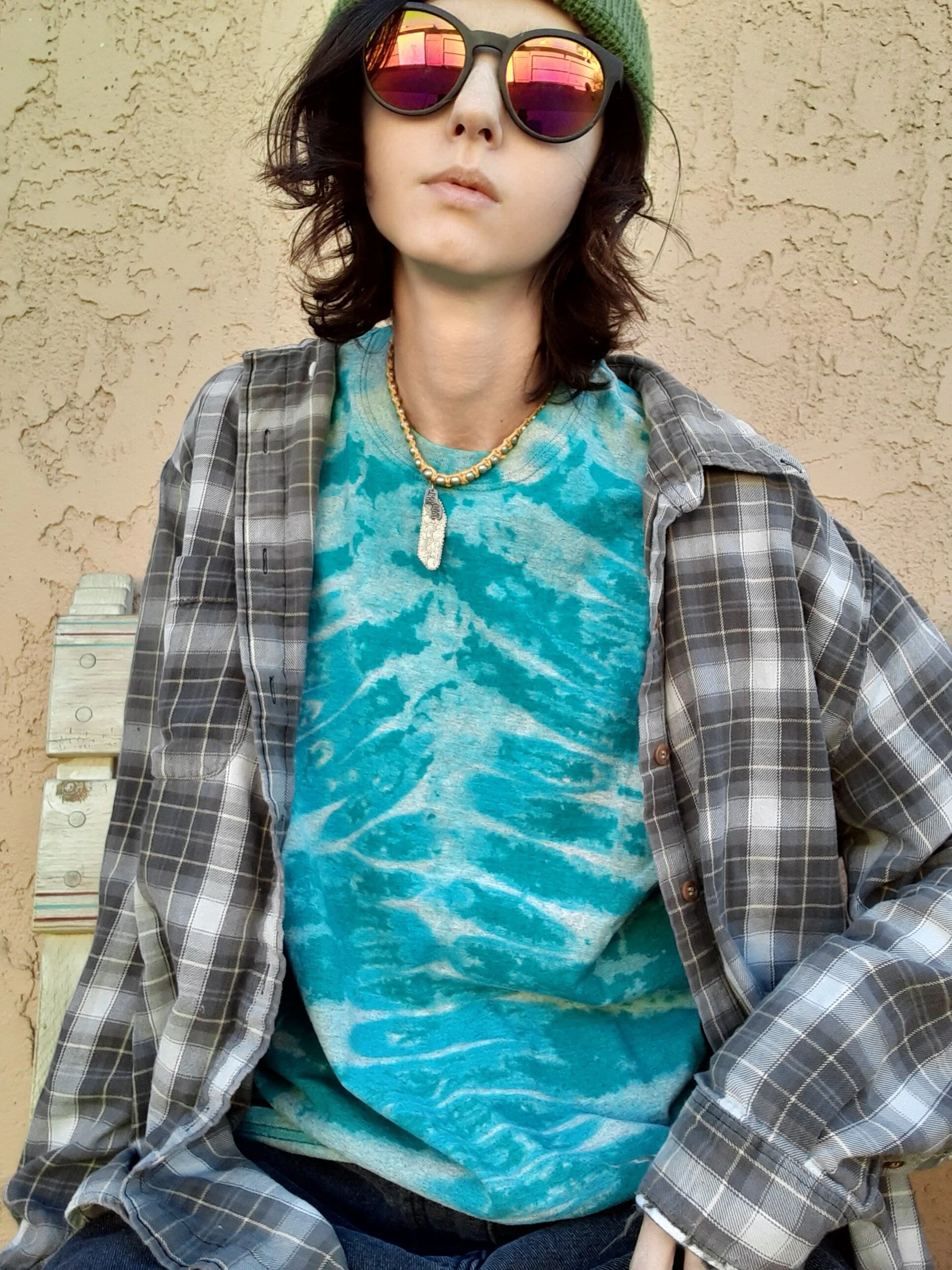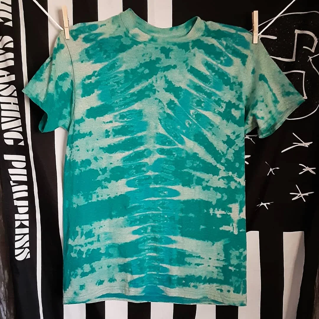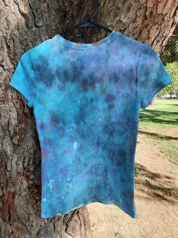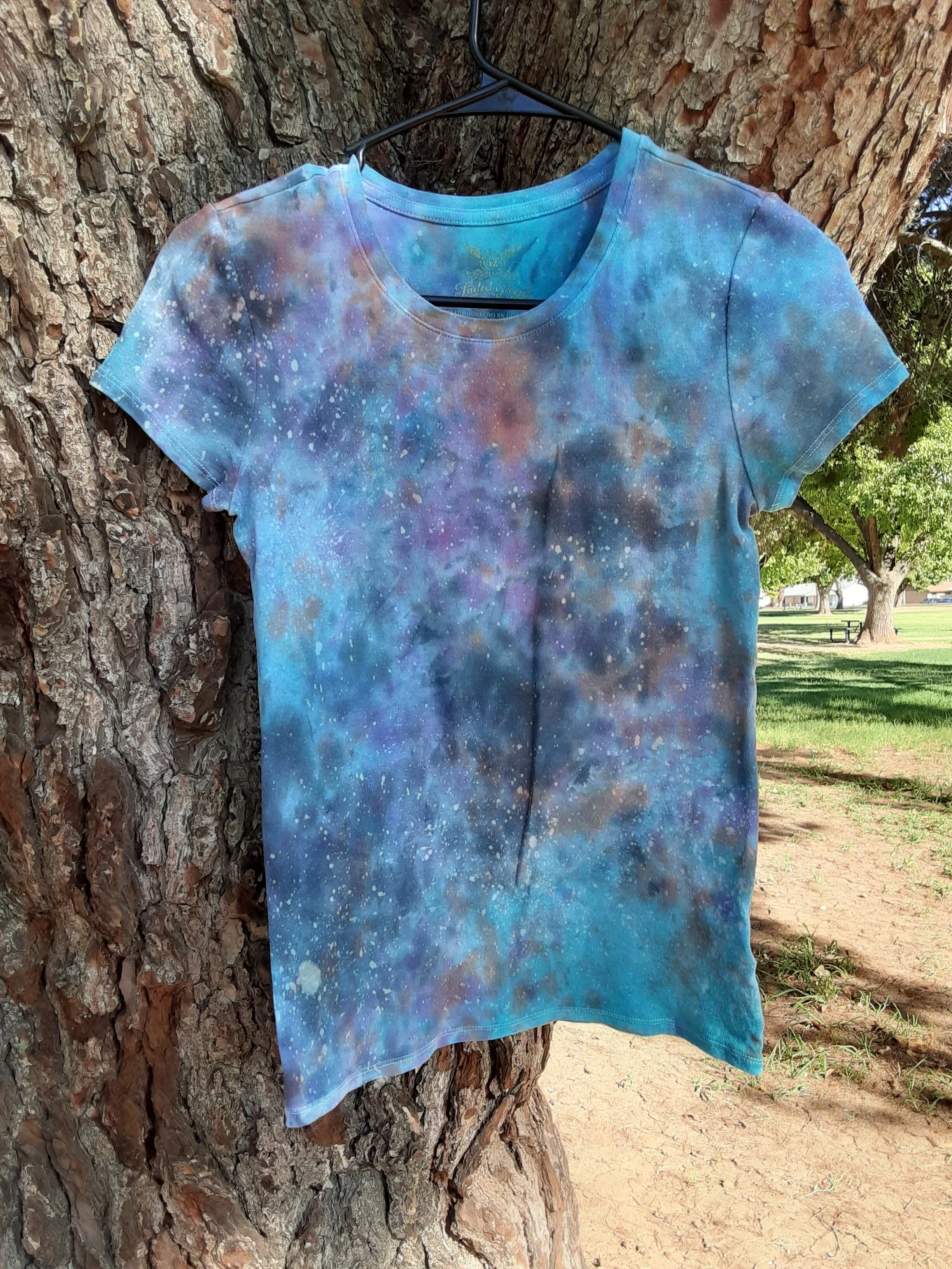 Hand dyed short sleeve shirt with shades of red and orange. 60٪ cotton 40% polyester, youth large
